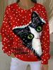 Women's Vintage Christmas Cat Printed Sweatshirt